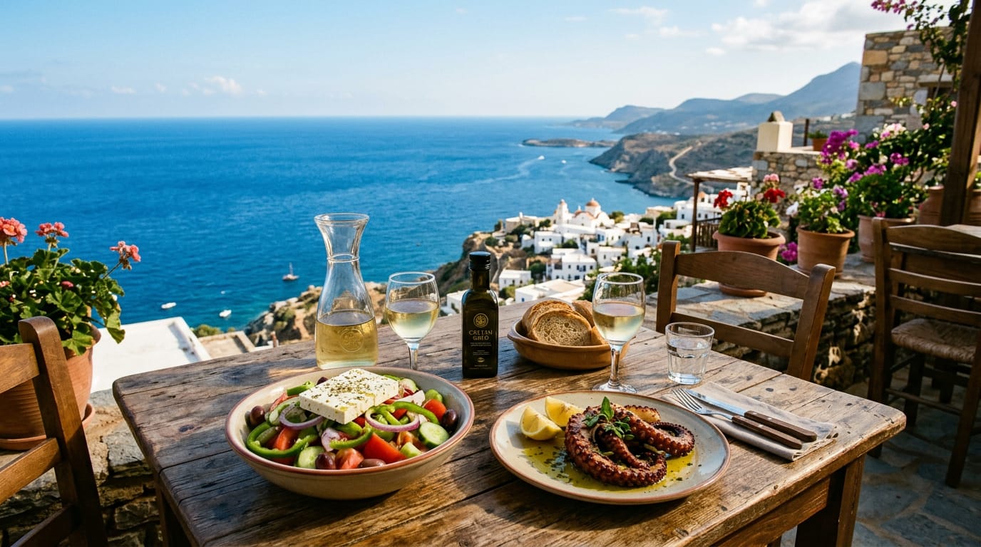 Cretan cuisine centres on exceptional olive oil, wild herbs gathered from hillsides, seasonal vegetables that taste like they should, and seafood pulled from the sea that morning. The island’s food varies dramatically from region to region. What you eat in mountain villages differs from coastal towns, and that diversity within one island creates endless discovery.